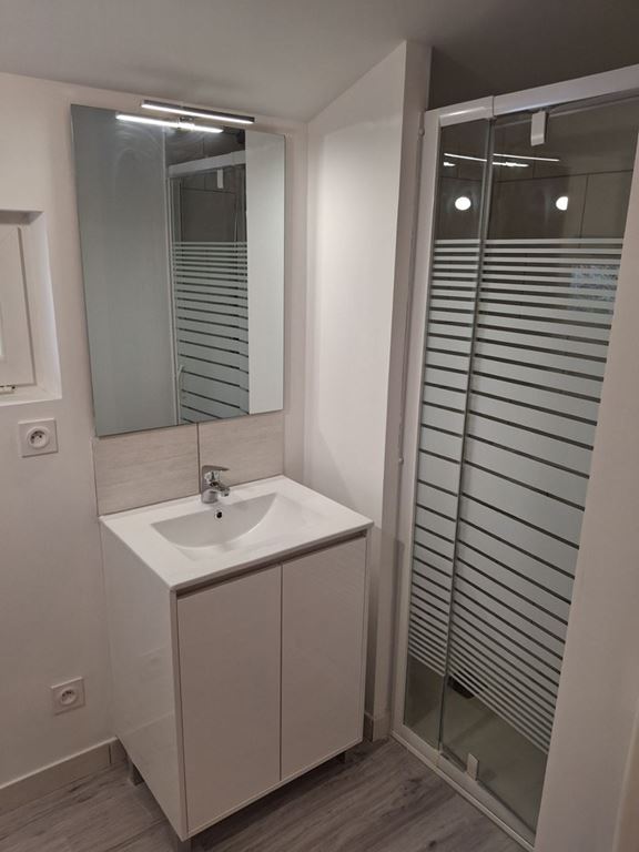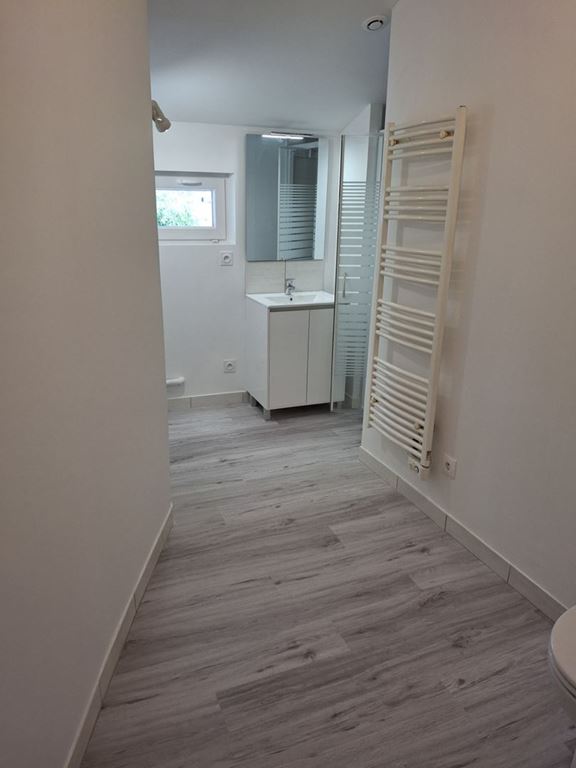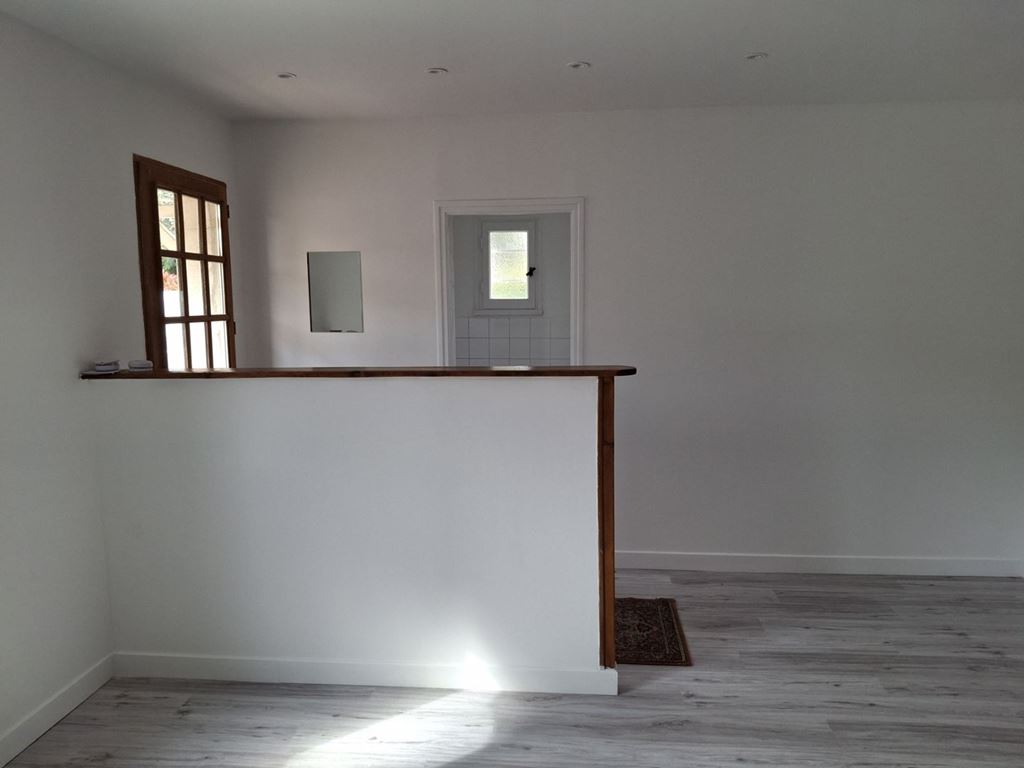 RDC : 1 entrée, 1 cuisine ouverte aménagée neuve, 1 séjour salon, 1wc.